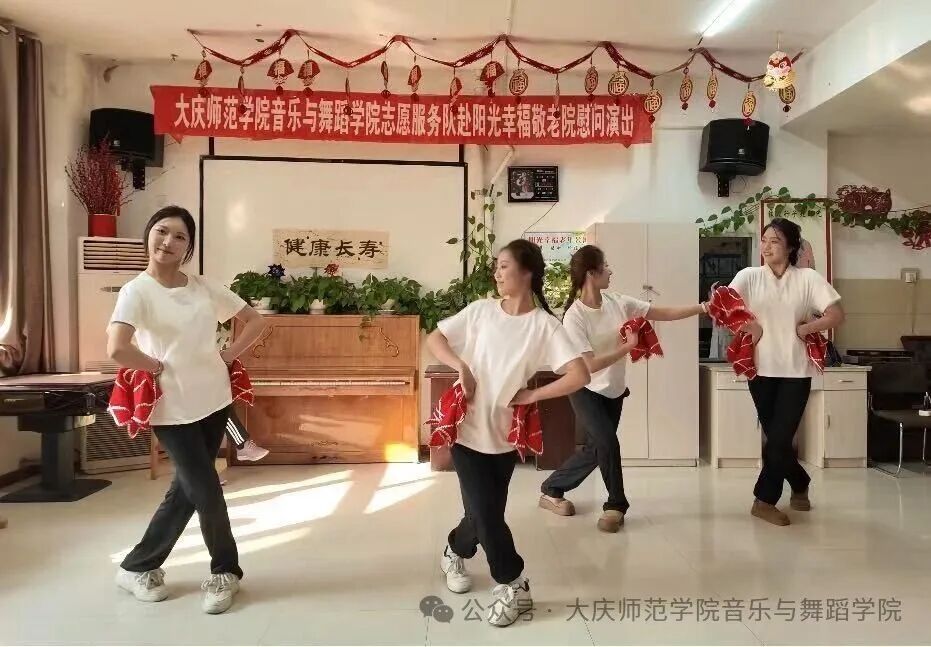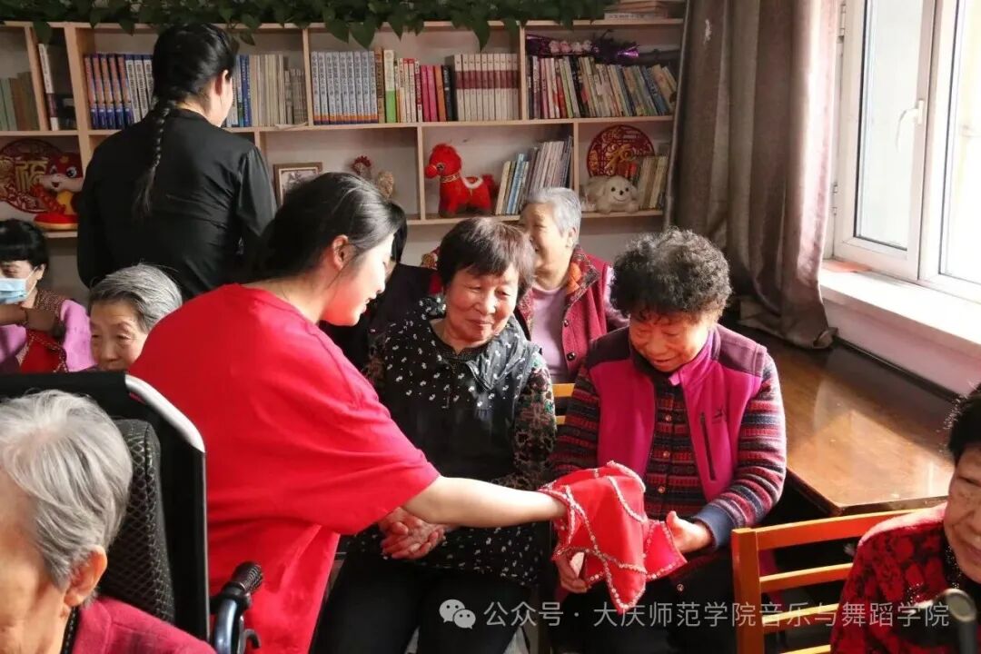为进一步丰富老人们的文化生活,志愿者们为老人们准备了一场精彩纷呈的文艺演出。开场舞蹈《大东北》热情奔放、地域特色浓郁,瞬间点燃现场气氛,将活动推向高潮。随后,婉转悠扬的声乐演唱温柔治愈、声声入心;二胡、古筝旋律清雅婉转、深情动人。志愿者们以扎实的专业功底和丰富多彩的艺术形式,为老人们带来了温暖、温馨的视听享受,赢得老人们的一致好评。老人们纷纷表示,同学们的到来为敬老院增添了生机与活力,让大家真切感受到来自青年学子的关怀与温暖。