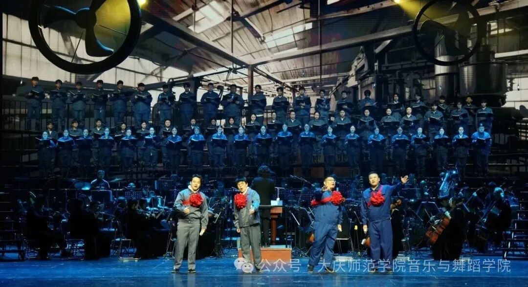 2025年10月11日至14日,大型原创交响情景剧《大国脊梁·百年浩歌》在大庆歌剧院掀起集中观看热潮。作为该剧协办单位,大庆师范学院音乐与舞蹈学院师生组建了150人的演出团队参加了本次演出,以实力为这部“工运史诗”注入青春力量,让学生们在高水平的艺术实践中实现专业能力的提升。